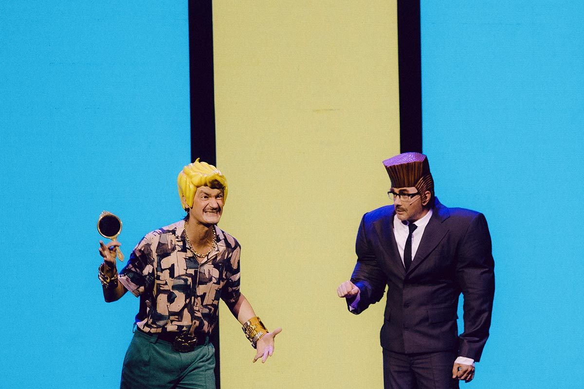 Александр Гудков в роли вора Соленого, Антракта и Радиолы: «Все эти персонажи были созданы будто под меня! Я играю Соленого — вора, шарлатана, шаромыжника. Благодаря ему я наконец-то спустился в зал, трогал детей, матерей — прячьте кошельки! Еще я играю Антракт. Мне всегда было жалко, что люди уходят во время перерыва. И тут в голове всплыл образ одушевленного Антракта — его всегда меняют на биопаузы и бутерброды. Это так обидно!»