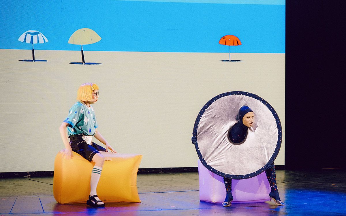 Серафима Гощанская в роли Тани и Птица-ныряльщицы. «Таня — лучшая подружка Верочки. Она взбалмошная, капризная, стервозная девочка, которая хочет отобрать у Верочки Зеркальце. А Птица-ныряльщица — суетливая, обожает болтать и всё блестящее»,— рассказывает о персонажах художник спектакля Маша Левина.